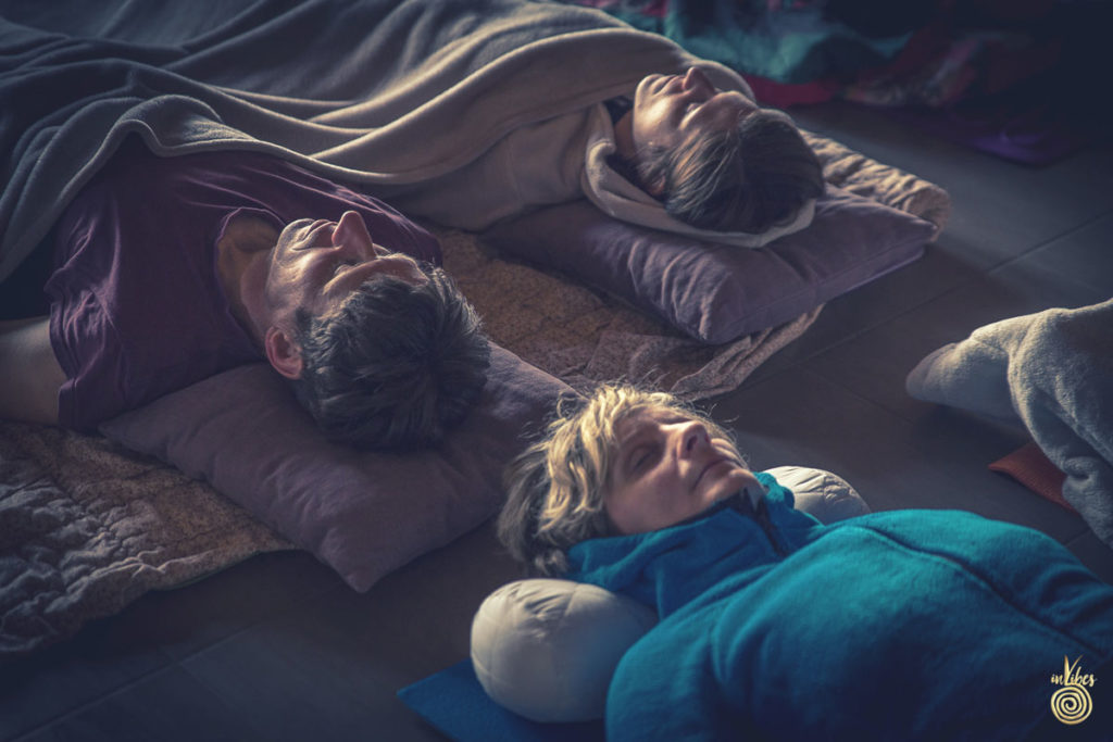 Ci si sdraia su un comodo materassino, in una sala accogliente o immersi nella natura, è sempre consigliata una coperta, un cuscino per sostenere il capo, per ricevere proprio come quando si è nel proprio letto e si sta per dormire. Non è richiesto alcuno sforzo: ci si deve solo predisporre all’ascolto e aprirsi alla ricezione delle vibrazioni.